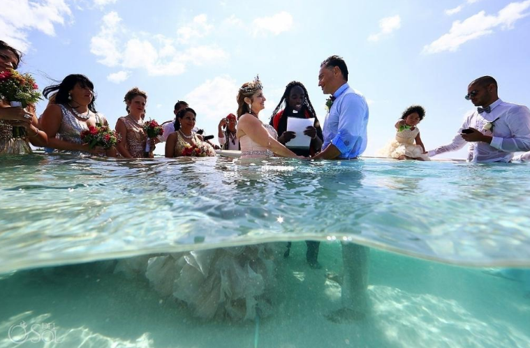 Casal faz cerimônia de casamento dentro d’água no mar do Caribe..
