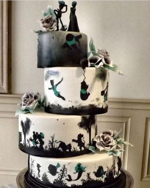 No bolo acima, os noivos escolheram o tema filmes da Disney. Não ficou adorável?