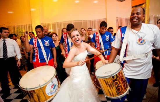 Tem algo mais animado do que uma escola de samba? Literalmente não, além de ser diversão garantida será algo marcante não só para os noivos, mas também para os convidados. Para os amantes de carnaval é uma forma de celebrar e alegrar todos em sua volta, afinal, quem consegue ficar parado com todo aquele samba eletrizante.