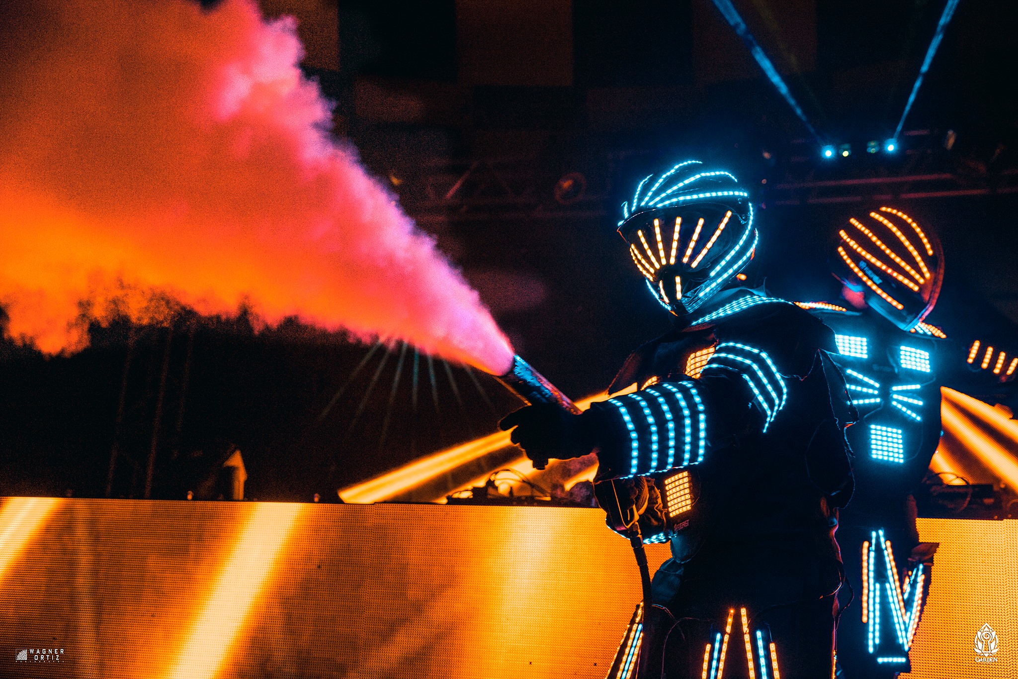 Os robôs de LED é uma atração que só de olhar já te arranca um sorriso, afinal, já fica apreensivo para oque vai vir por aí. Eles normalmente são usados para as aberturas de pista de dança, mas de uma forma totalmente inusitada, abusando das danças, fumaças e tudo que tem direito.