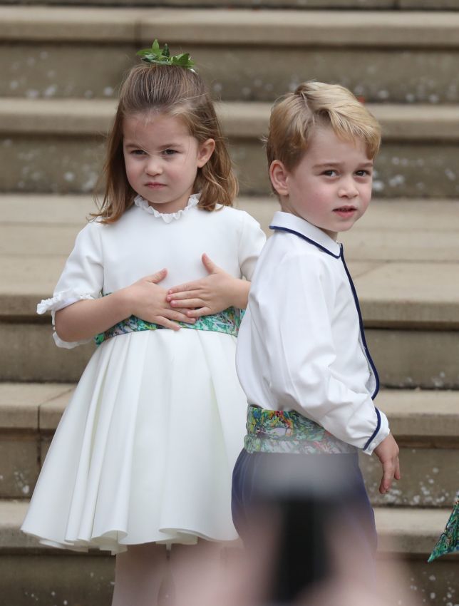 Quem roubou a cena na cerimônia foram os irmãos, o Príncipe George e a Princesa Charlotte, que foram respectivamente dama de honra e pajem. Filhos do Príncipe William e de Kate Middleton, os dois são queridinhos da mídia britânica, e dessa vez também esbanjaram personalidade. As daminhas e os pajens vestiam Amaia Kids, marca infantil inglesa favorita da família real. A faixa na cintura trazia uma inspiração na pintura do artista Mark Bradford.