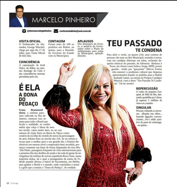 Neste domingo, a empresária Ivana Beaumond foi destaque na coluna do jornalista Marcelo Pinheiro para o jornal Diário do Pará. Confira a matéria na íntegra: