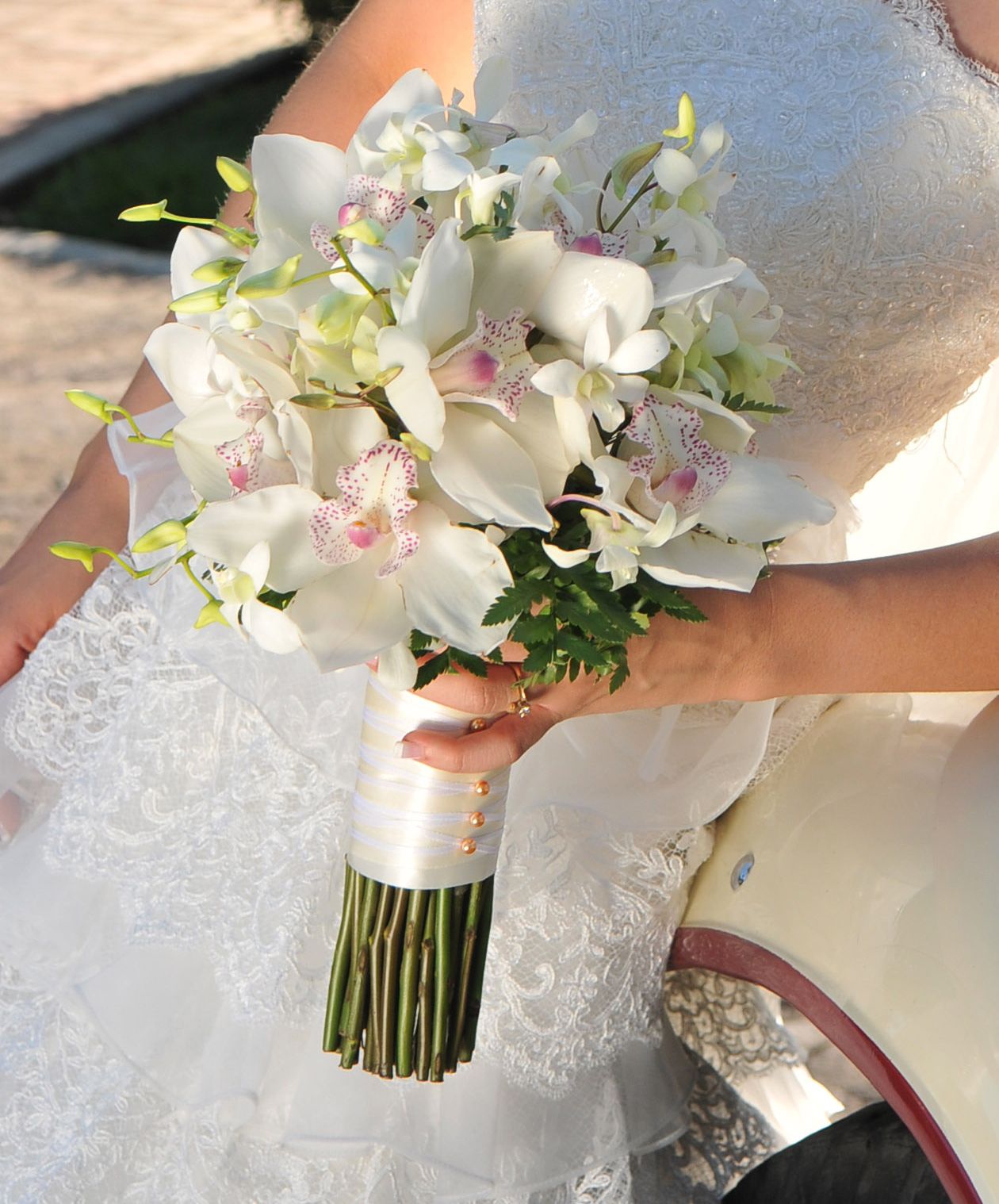 As orquídeas são as queridinhas de muitas noivas pois existem em muitas cores, são delicadas e exóticas ao mesmo tempo. Então, as apaixonadas que irão casar têm liberdade criativa de escolher seu buquê combinando flores. O lírio da paz é uma ótima escolha e combina muito com um arranjo de orquídeas.