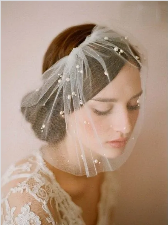 Geralmente, não é o favorito de algumas noivas, mas moram em um lugarzinho do coração de quem prefere um estilo vintage, indie e diferente. Esse tipo de véu é preso com grampos ou presilhas no cabelo da noiva despojada e trazem à composição uma tendência de estilo diferenciado e com personalidade. Podem ser utilizados com vestidos de muitos detalhes no pescoço, ombros e peito pois seu comprimento não esconde nenhuma parte do vestido.